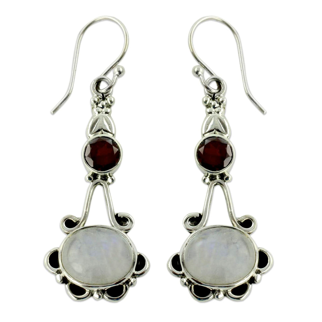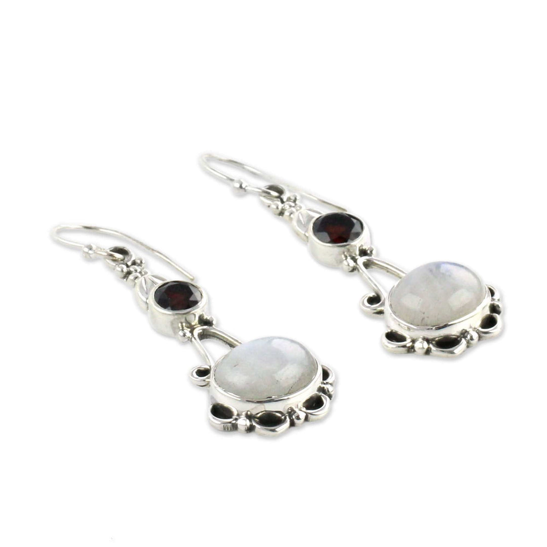 Garnet and Rainbow Moonstone Sterling Silver Earrings - Fresh Beauty