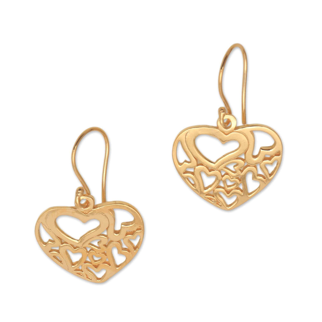 Heart Motif 18k Gold Plated Sterling Silver Dangle Earrings - Full-Hearted