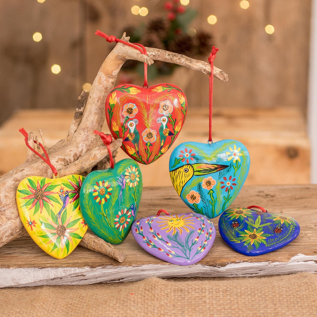 If you hold the Christmas holidays close to your heart, then this set of six heart-shaped ornaments crafted and painted by hand will be the perfect decoration for your tree. Guatemalan artisan Jose Arriola designs the ornaments from ceramic in red, yellow, blue, light blue, purple and green with lovely floral, leaf, animal and sun motifs. Each one comes with stainless steel hooks and waxed polyester cords to hang from the tree and can be safely stored in the accompanying striped bag made from 100% cotton.