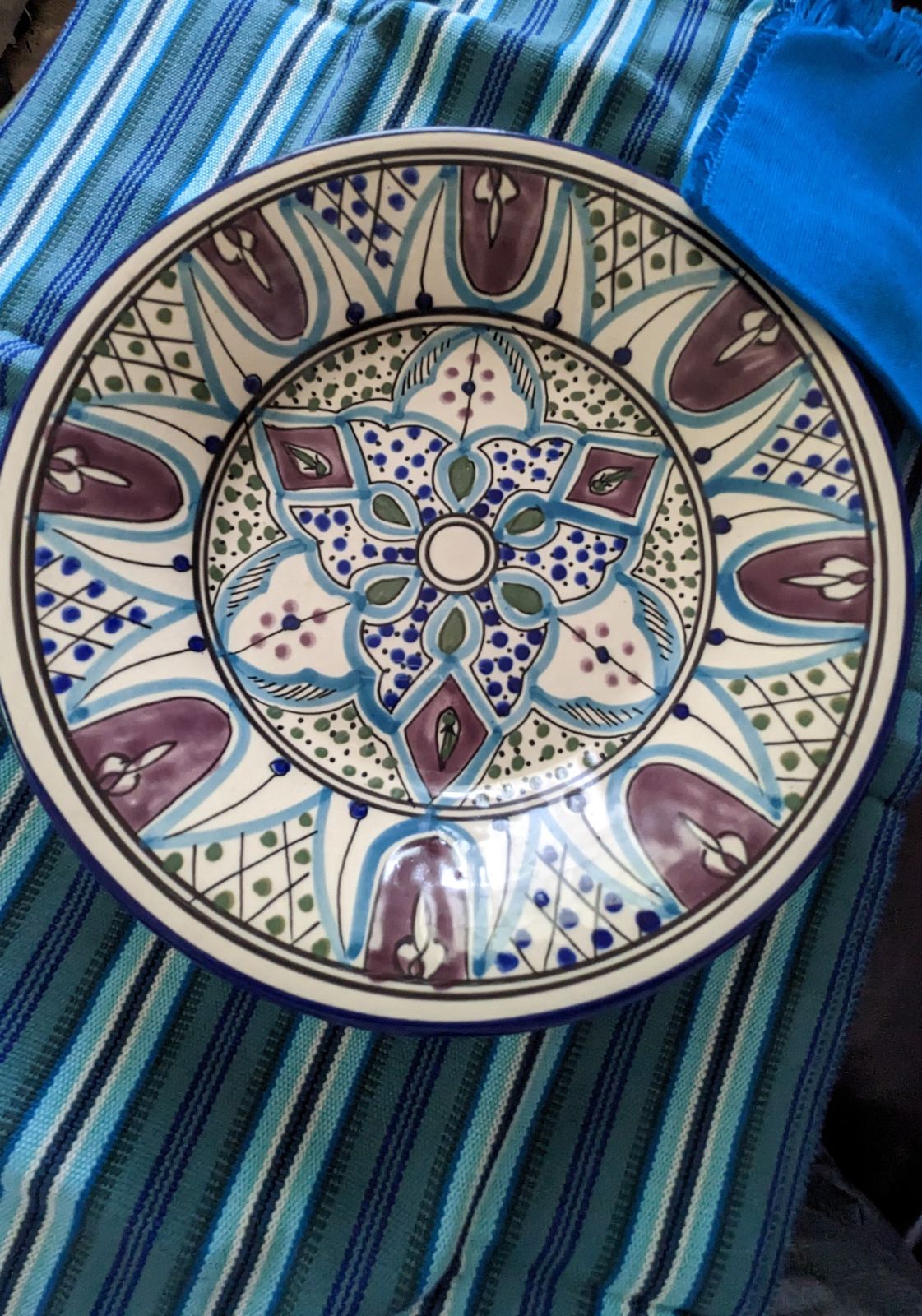 Bands of cool color flow across a set of handwoven placemats, evoking the Guatemalan seacoast. Working on a traditional handloom, Eladio Chiroy combines black, turquoise and sapphire blue on a teal green background. Matching napkins in solid blue complete the lovely set for four. Many of the natural colors are derived from seeds, herbs, tree bark and woods.