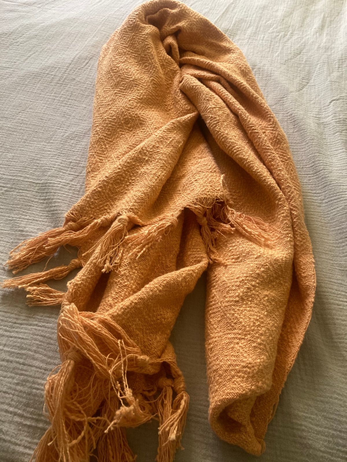 Woven from cotton with an appealing slubbed texture, this throw blanket is from Sandeep Malhotra in India. The marigold-yellow throw features tasseled fringe at both ends.