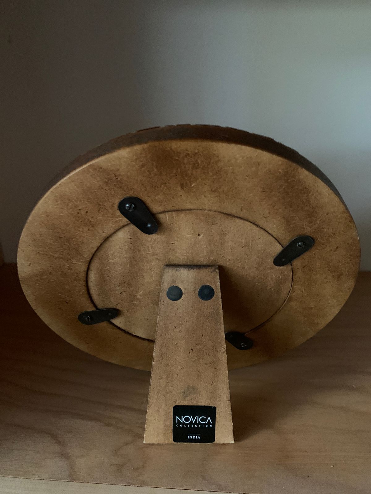 "I work mostly in iron, brass and aluminum, which are so abundant. But I also combine the metals with wood, horn, bone and glass to create beautiful votives, mirrors and photo frames. The metals used are all recyclable. The main process includes casting the metal and glass in the desired shapes.
