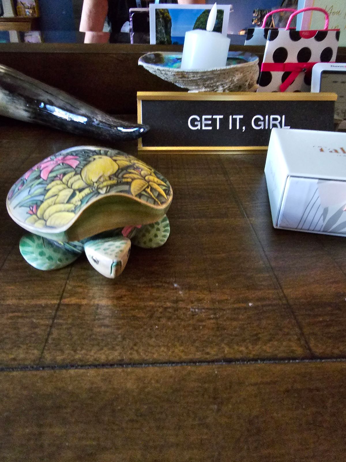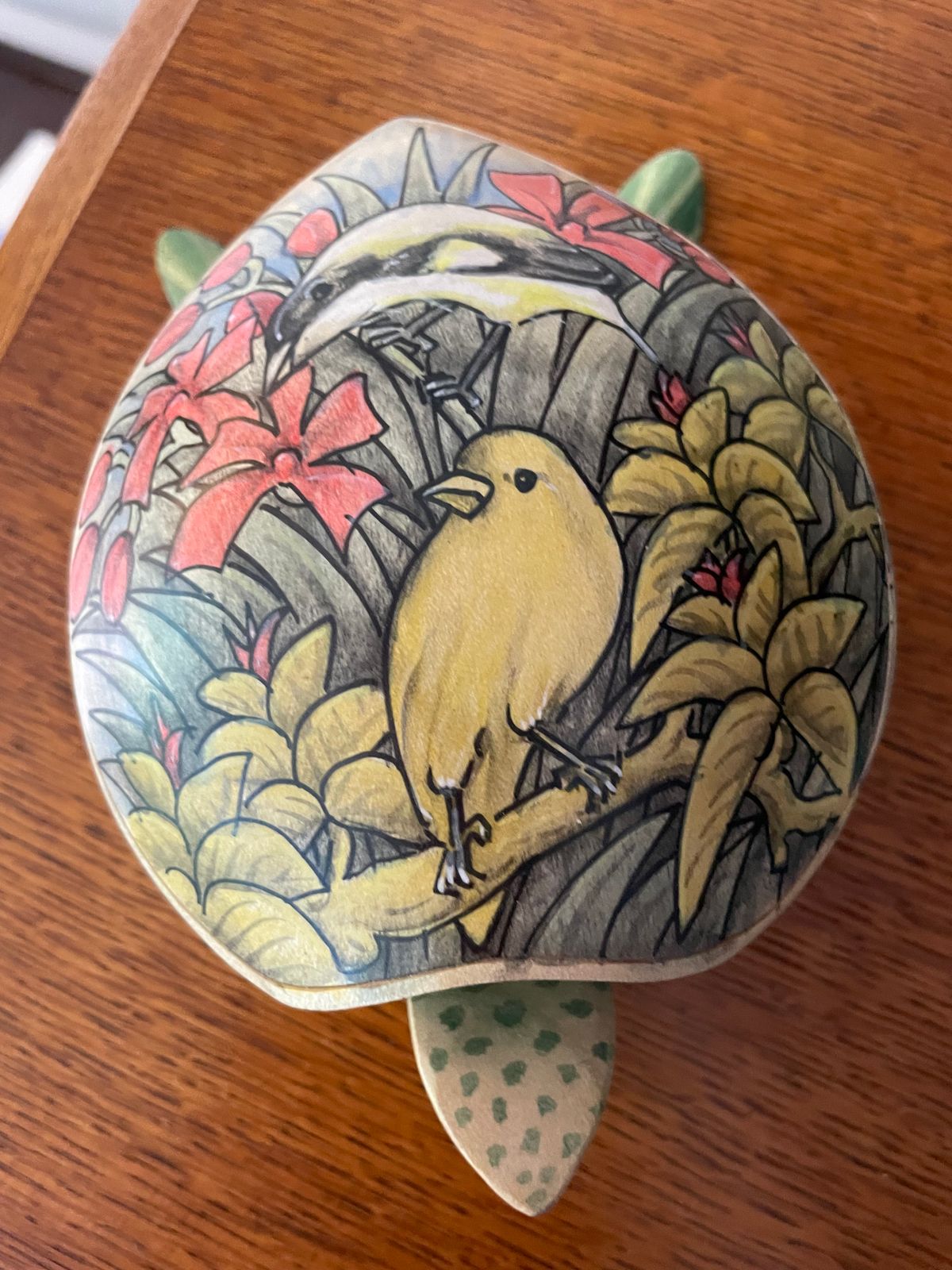 Hand-Painted Crocodile Wood Turtle Jewelry Box - Forest Turtle