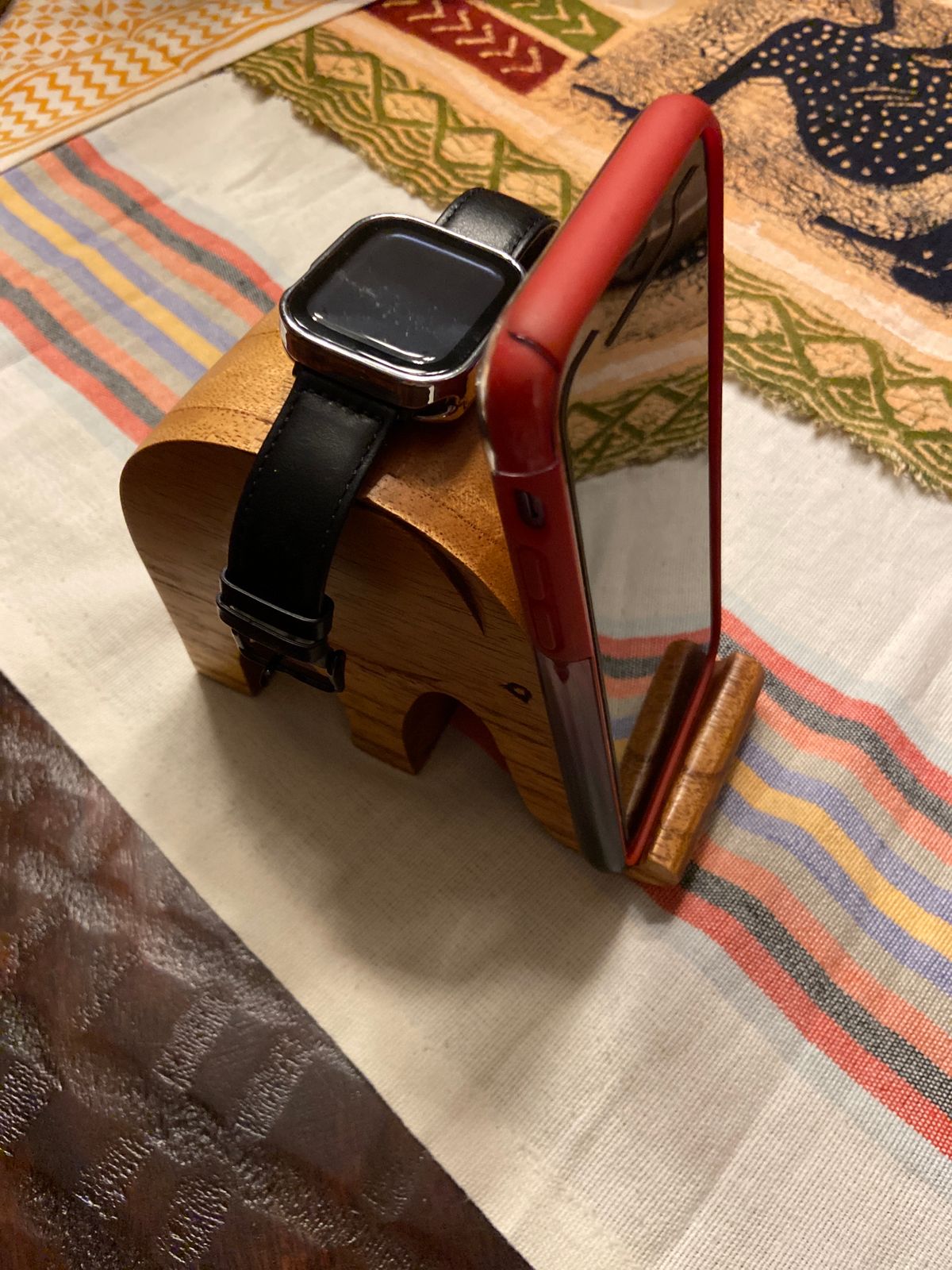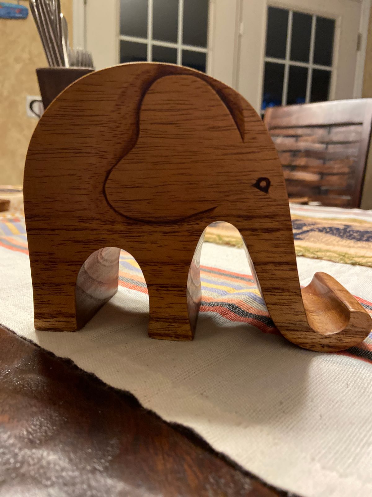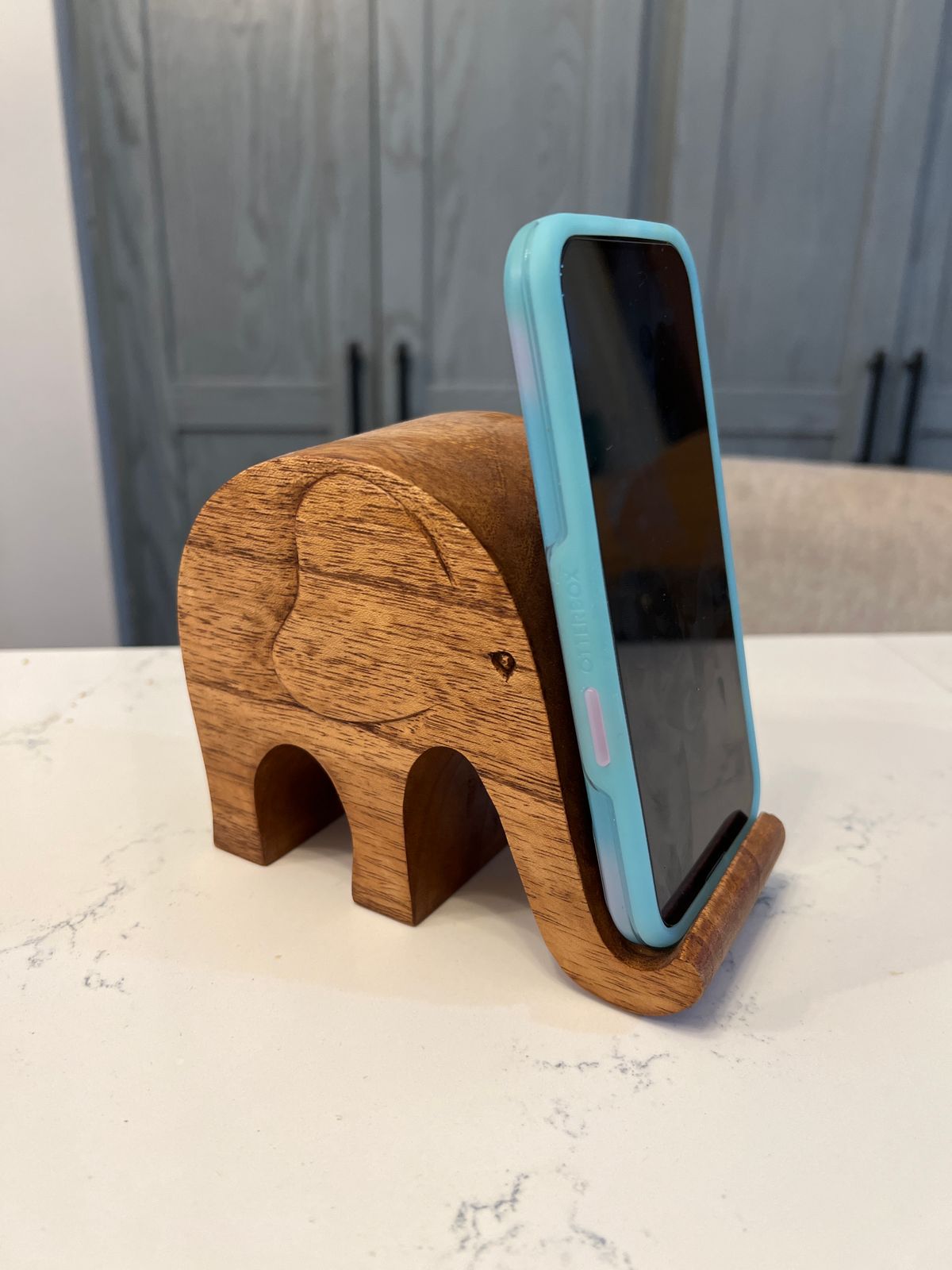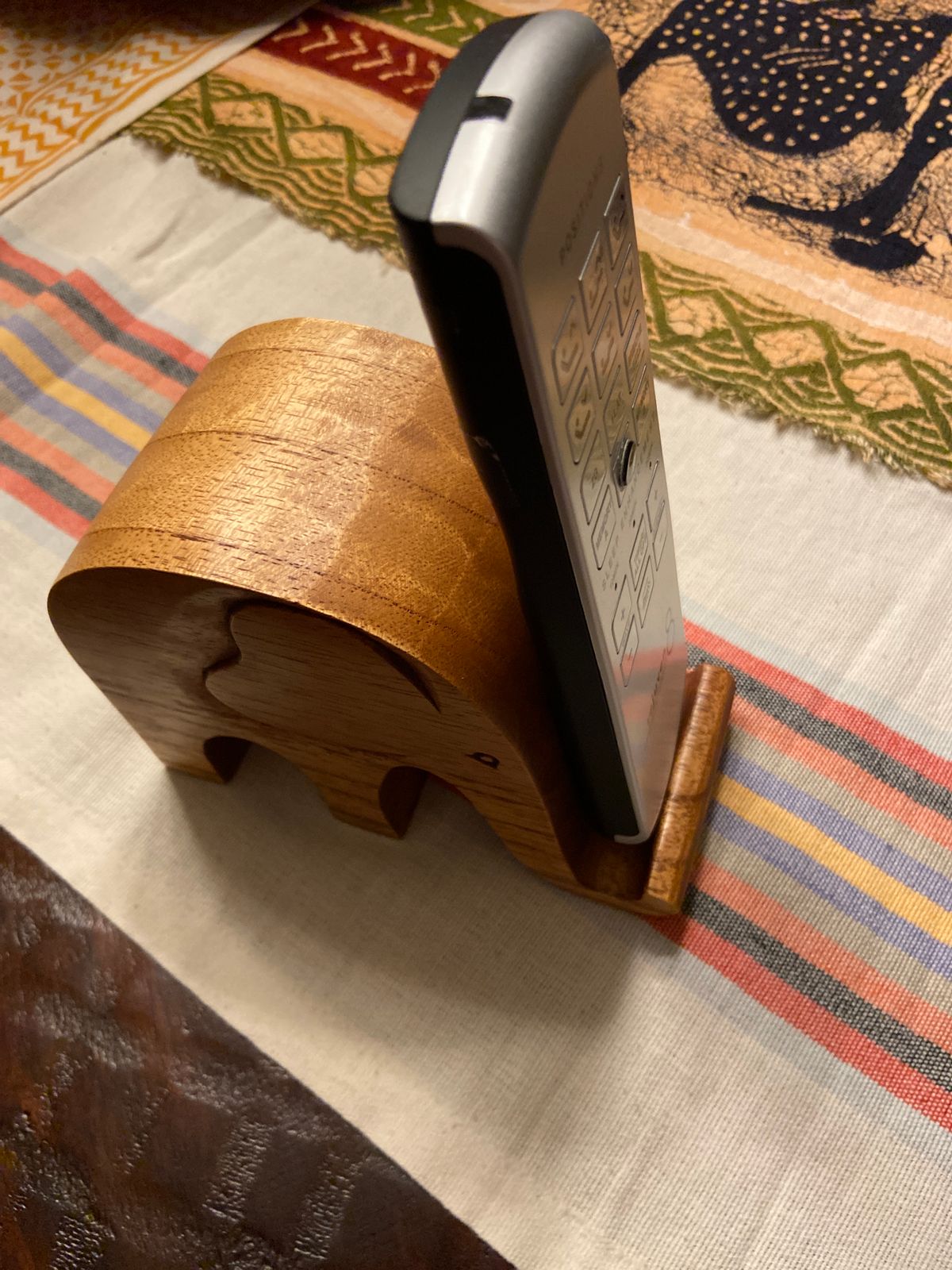The perfect blend of form and function comes to life in this unique hand-carved phone stand from Bali’s Komang Sulaksana. Hand carved in jempinis wood, this precious pachyderm gracefully props up your smartphone for easy viewing. A truly distinctive accessory for your desk or bedside table.