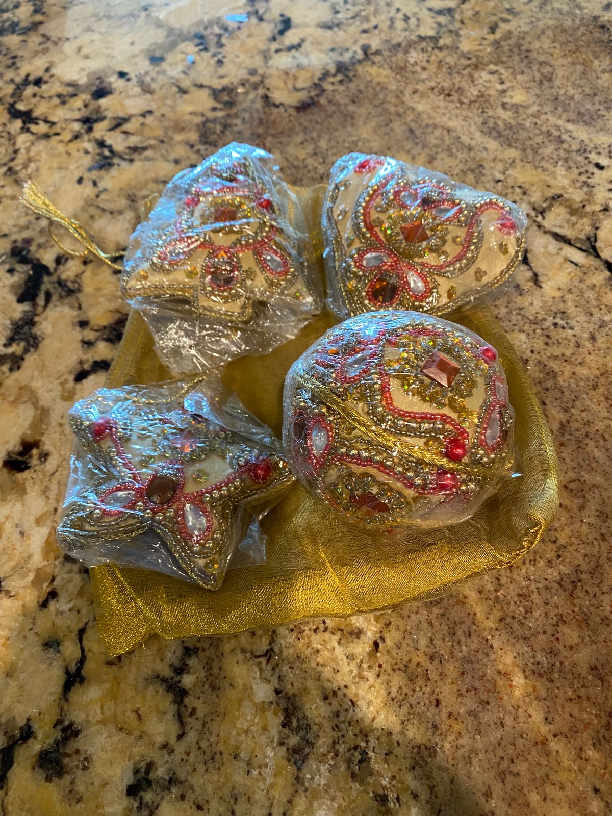 Embellished Satin Ornaments - Set of 4 - Lavish Holiday