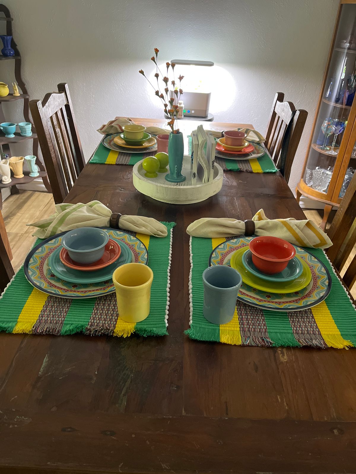 Vibrant colors will bring a little piece of Colombia's spirit to your table, all thanks to a gorgeous design by Jacqueline Daza. Choosing a palette of viridian and yellow hues, the artisan handcrafts this set of four cotton blend placemats featuring a chic striped pattern.