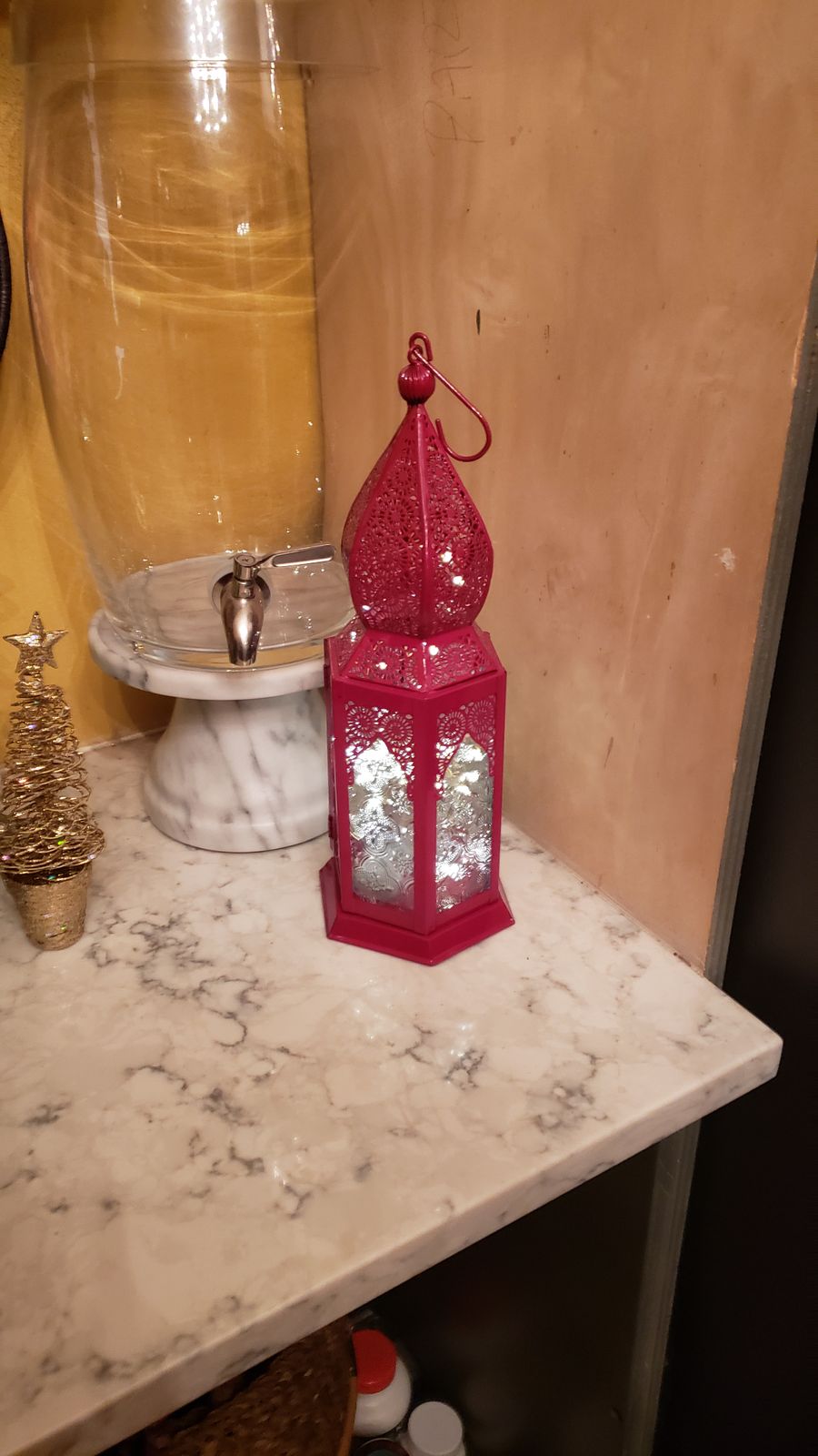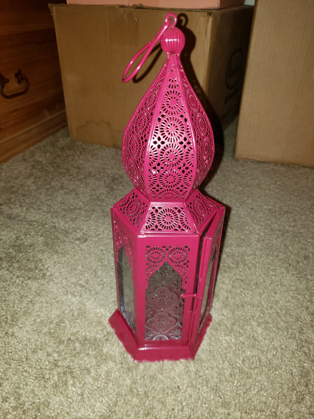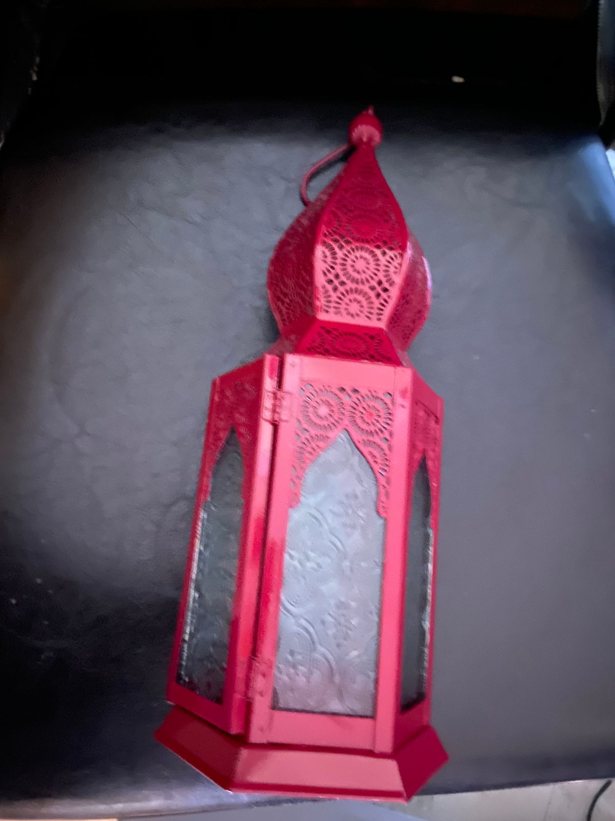 It is cute and looks great with lights inside. Per recent experience with smaller Lanterns from GlobeIn you cannot use tea lights because the metal gets too hot. Putting lights with a timer works great