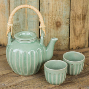 Handmade Thai Ceramic Tea Set in Green Celadon (Set for 2) - Thai Jade