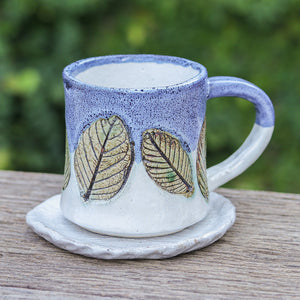 Handcrafted Ceramic Mug and Saucer Set with Leaf Motif - Charming Leaves