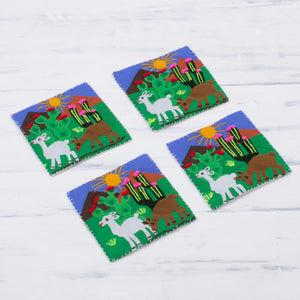 Animal-Themed Cotton Blend Arpillera Coasters (Set of 4) - Andean Life