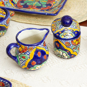 Hand-Painted Talavera-Style Cream and Sugar Set - Hidalgo Fiesta