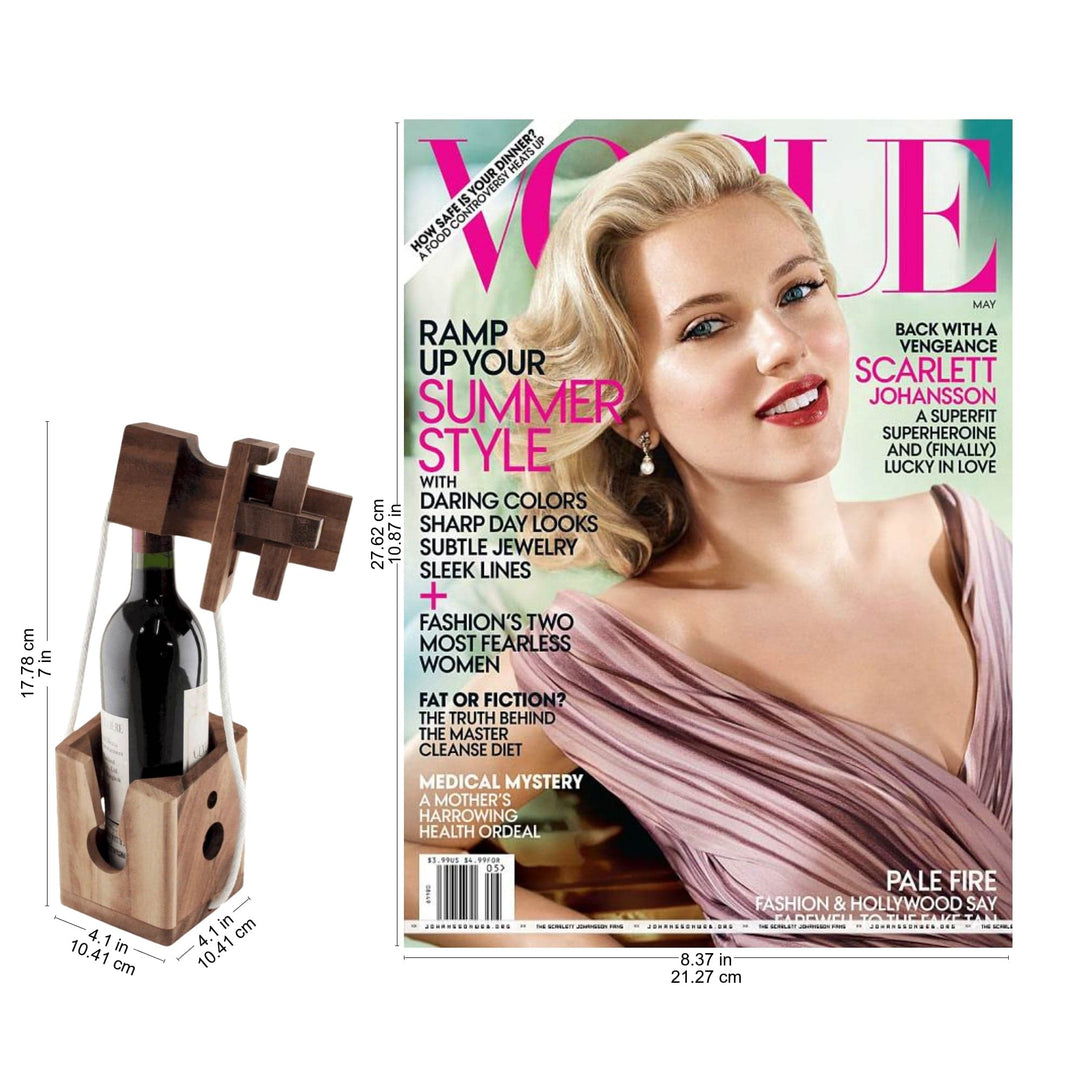 Demonstrating his creativity and love for games, Thai artisan Waraporn Khamsuk creates this ingenious puzzle that is perfect for entertaining friends and guests. The goal is to figure out how to free a wine bottle using four pieces of interlocking rain tree wood, a task which will prove to be an enjoyable and motivating challenge. The puzzle is reusable and fits a 12 inch by 3 inch wine bottle.