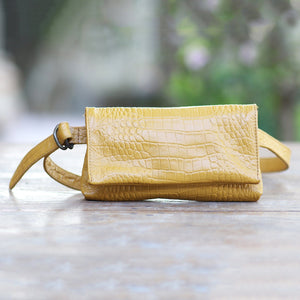 Artisan Made Leather Crocodile Texture Waist Bag - Cool Carrier in Ochre Croco
