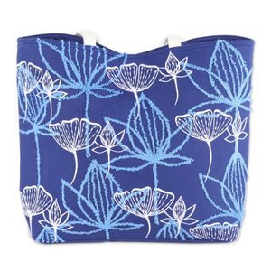 Embroidered Floral Cotton Tote in Lapis - Lapis Garden