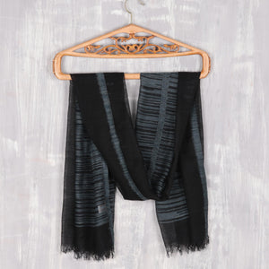 Tri-Tone Dark Wool Shawl Woven in India - Midnight Delight