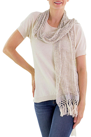 Artisan Crafted Cotton Shawl in Stone from India - Graceful Glam in Stone