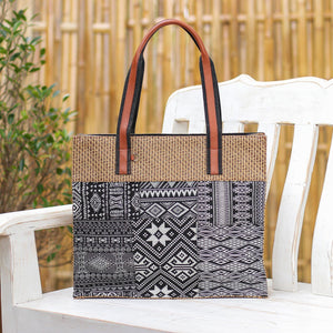 Leather-Accented Patchwork Tote Bag - Chill Night in Black