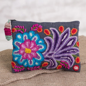 Embroidered Floral Alpaca Clutch in Slate from Peru - Midnight Delight