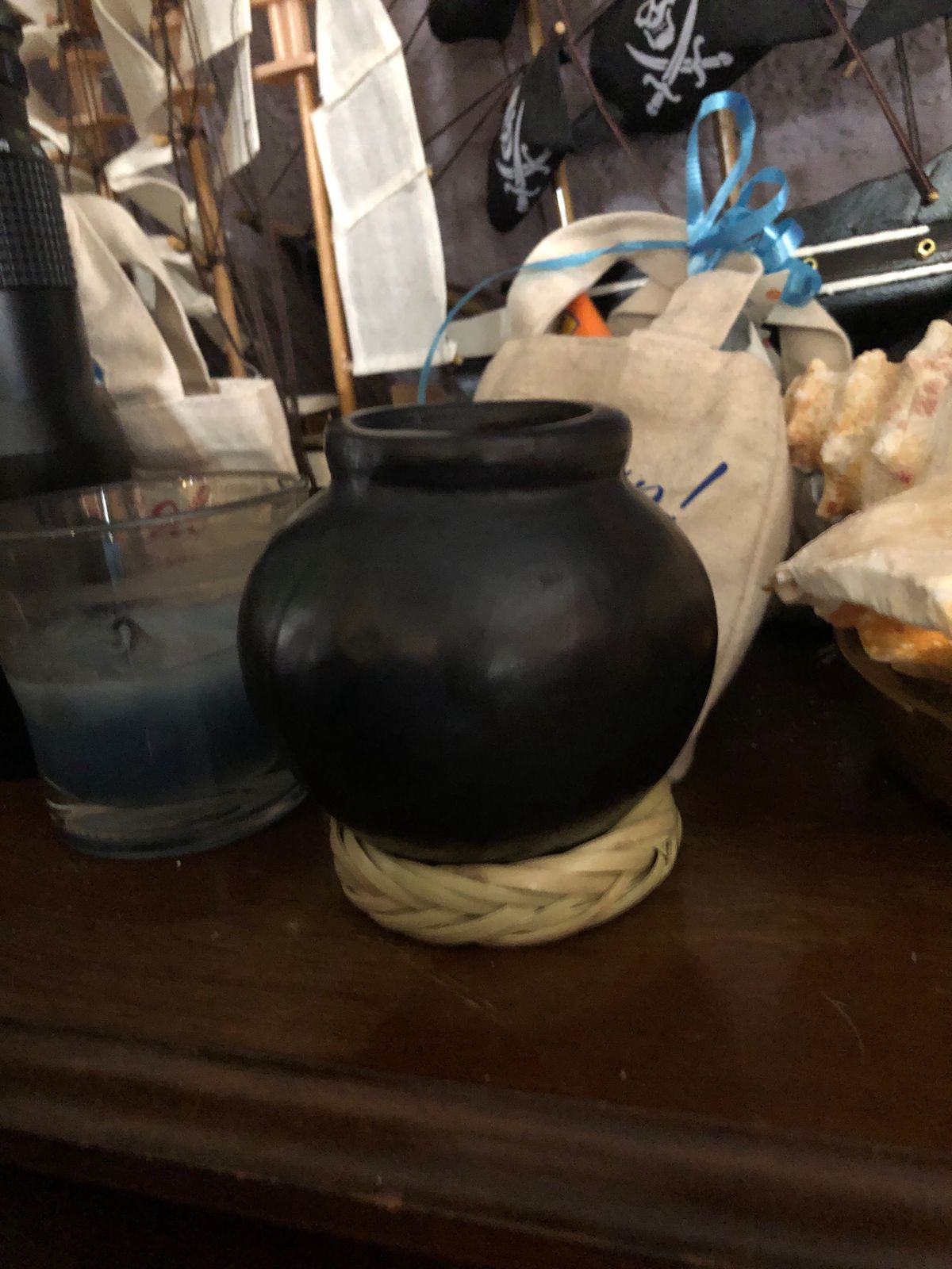 Nothing better for adding character to your spaces than this unique ceramic decorative mini vase handmade with traditional Oaxacan barro negro or 'black clay.' The handsome vase is designed and hand-crafted by Fernando and Magali Pedro in Mexico and comes with a natural fiber base made from reed straw.