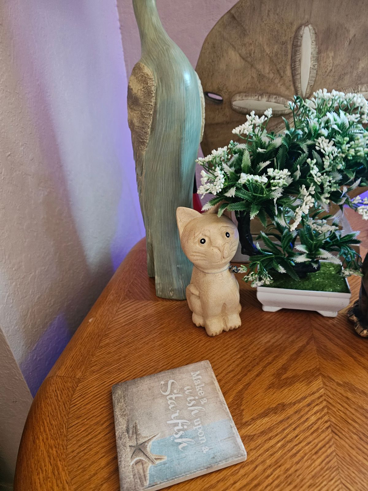 Hand-Carved Raintree Wood Cat Figurine with Aluminum Bell - Feline Melody