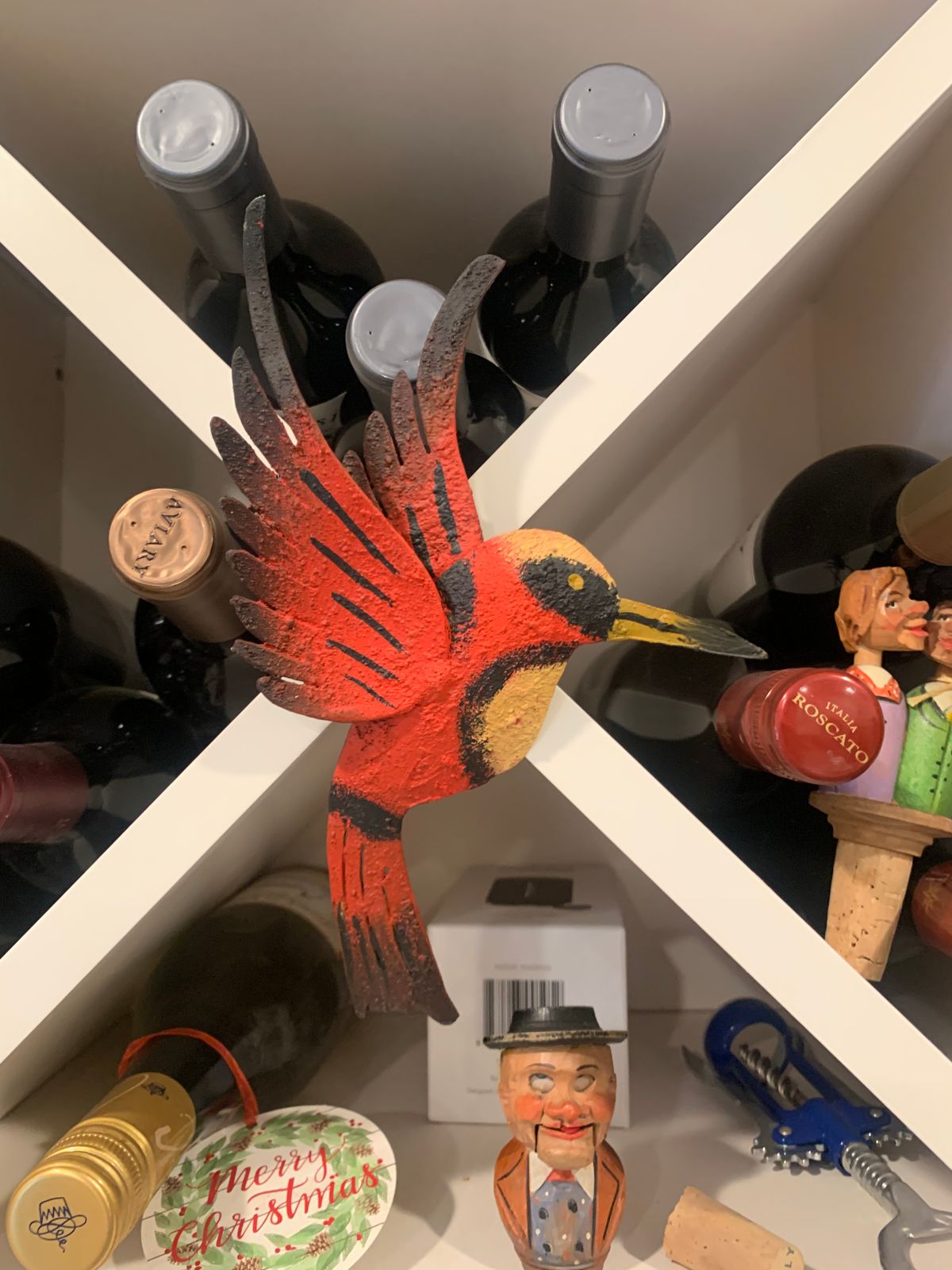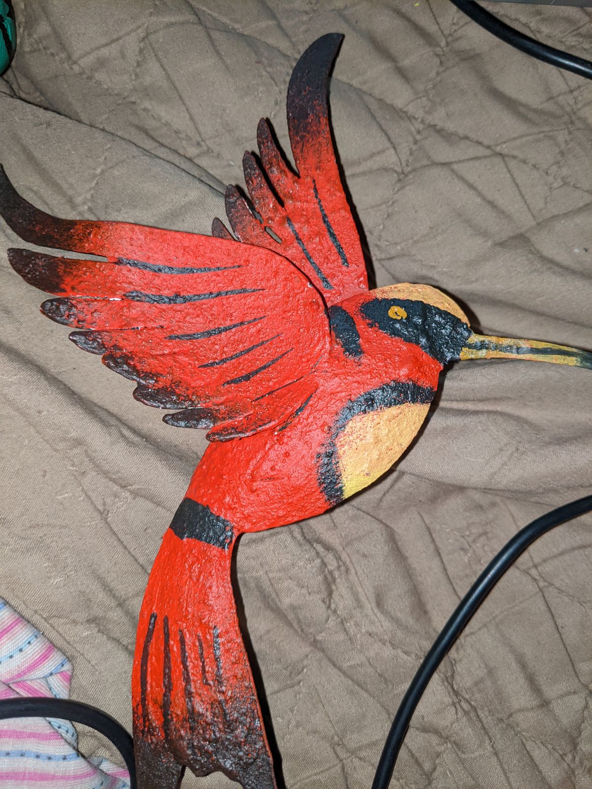 Unique Red Bird Wall Art Steel Sculpture from Mexico - Little Ruby Hummingbird