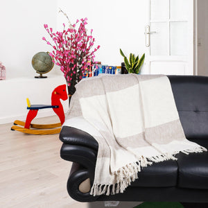 Brown and Ivory Cotton Throw Blanket - Diamond Elegance in Umber