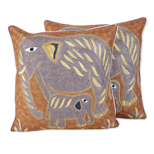 Elephant Theme Embroidered Chainstitch Cushion Covers (Pair) - Grey Elephants