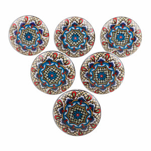 Hand Made Ceramic Cabinet Knobs Floral (Set of 6) India - Multicolored Flower Harmony