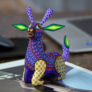 Wood Alebrije Giraffe Figurine Hand-Painted in Mexico - Cheerful Giraffe