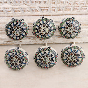 Multicolored Floral Ceramic Knobs from India (Set of 6) - Royal Garden