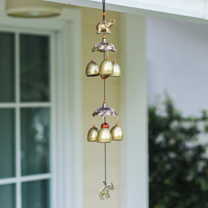 Elephant Themed Wind Chime Made from Aluminum and Brass - Wisdom Bells