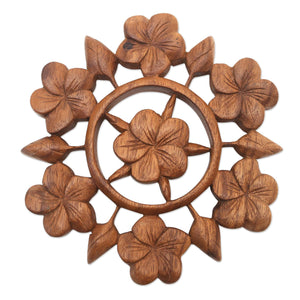 Hand Carved Floral Wood Wall Relief Panel from Indonesia - Frangipani Garden
