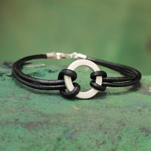 Sterling Silver Leather Wristband Men's Bracelet - Harvest Moon