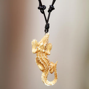 Carved Bone Alligator Pendant Necklace on Leather Cord - Alligator