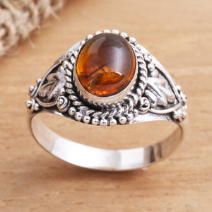 Carnelian Cabochon Sterling Silver Cocktail Ring - Sunrise, Sunset
