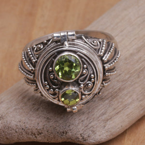 Sterling Silver Peridot Locket Ring from Bali - Peace Box
