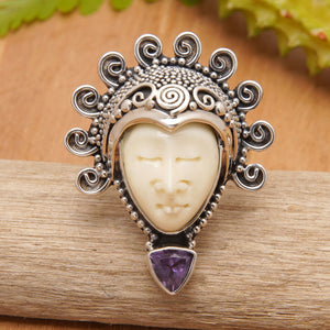 Amethyst Sterling Silver Bone Cocktail Ring from Indonesia - Saraswati Face in Purple