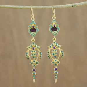Enameled Gold Plated Brass Earrings from Thailand - Thai Sweetness
