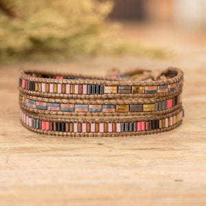 Glass Beaded Wrap Bracelet with Tibetan-Style Pewter Button - Earthy Chic