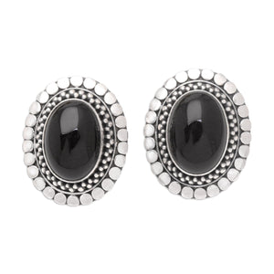 Sterling Silver and Onyx Button Earrings - Island Aura
