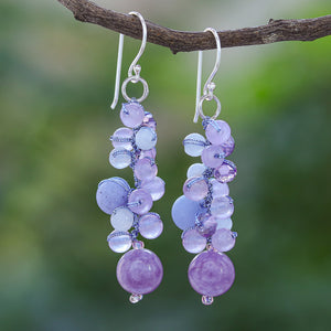 Handmade Pink Quartz Beaded Dangle Earrings from Thailand - Blossom Blush