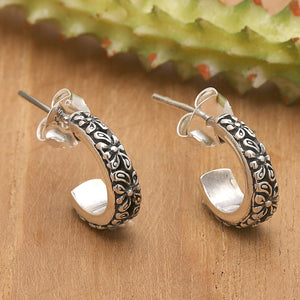 Classic Flower-Themed Sterling Silver Half-Hoop Earrings - Paradisial Nimbus
