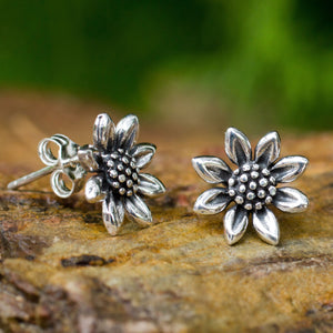 Small Sterling Silver Sun Flower Post Earrings from Thailand - Sunflower Love