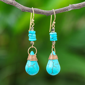 Howlite Pyrite Reconstituted Turquoise Dangle Earrings - Rainshower
