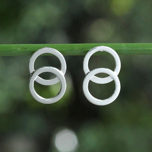 Thai Sterling Silver Geometric Circle Modern Button Earrings - Forever Circles