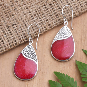 Red Teardrop Sterling Silver and Resin Dangle Earrings - Bali Pear