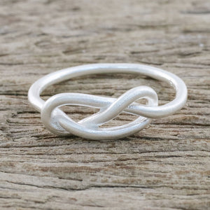 Sterling Silver Cocktail Mid-Finger Ring from Thailand - Gleaming Knot