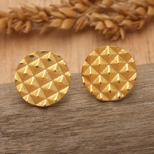 Geometric Round 18k Gold-Plated Stud Earrings from Bali - Pyramidal World