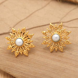 22k Gold-plated Cultured Pearl Chakra Button Earrings - Oceanic Chakra