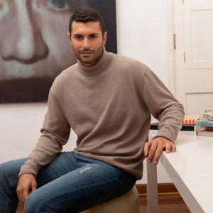 Eco Friendly Jersey Knit Men's Turtleneck Pullover Sweater - Jersey Bisque